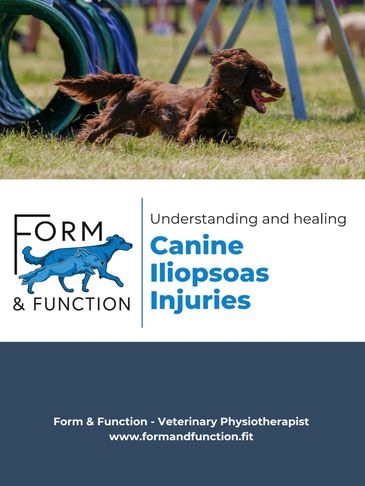 Canine iliopsoas strain is a commonly overlooked injury that occurs in as many as 32% of cases of hindlimo lameness in dogs. It often occurs in active or sporting dogs, and can be missed in performance dogs, where it may be seen simply as a reduction in performance instead of an obvious lamene